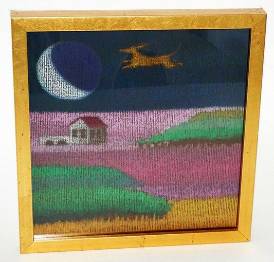 Hawaii Framed Oil Pastel Painting A Dog Chasing the Moon by Noelani Block (BrB)