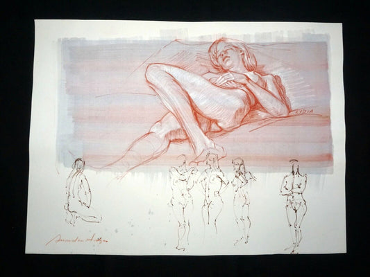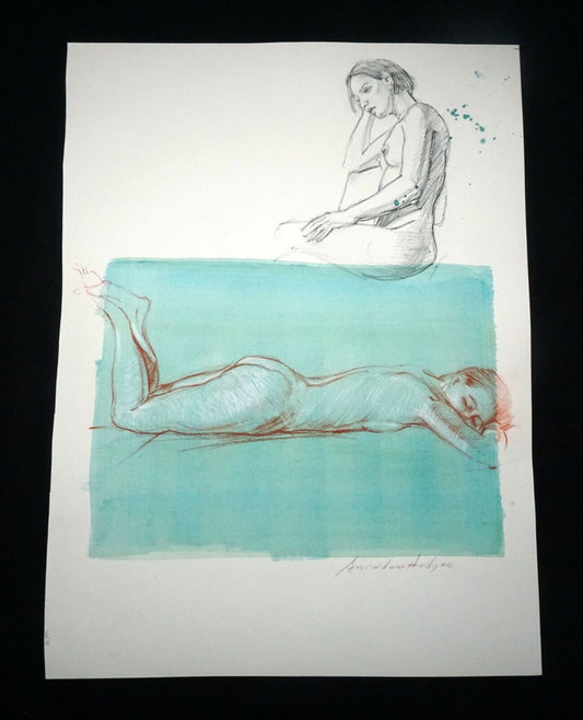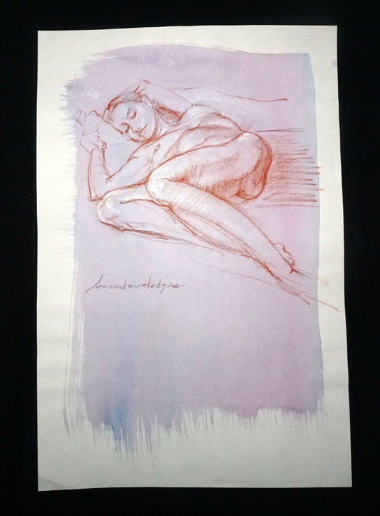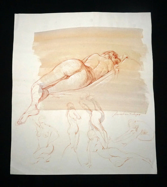 Hawaii Mixed Media Wash Painting Sleeping Female Nude by Snowden Hodges(Sho)#104