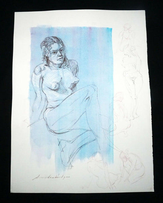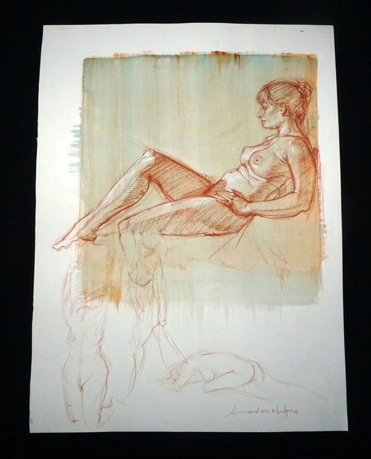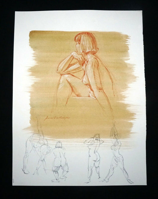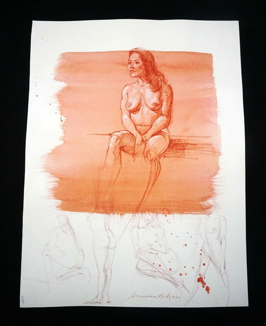 Hawaii Mixed Media Wash Painting Seated Female Nude Snowden Hodges (Sho)#146