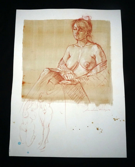 Hawaii Mixed Media Wash Painting Seated Female Nude Snowden Hodges (Sho)#147