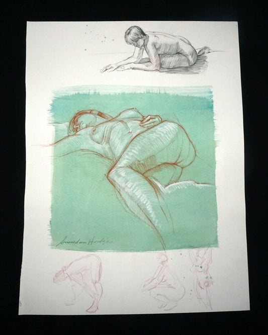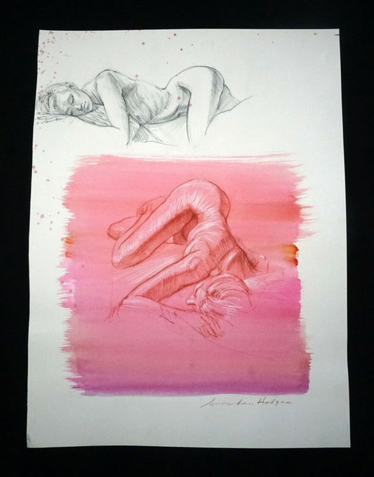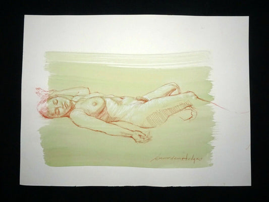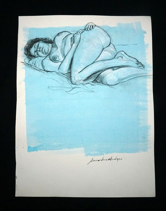 Hawaii Mixed Media Wash Painting Sleeping Female Nude Snowden Hodges (Sho)#116