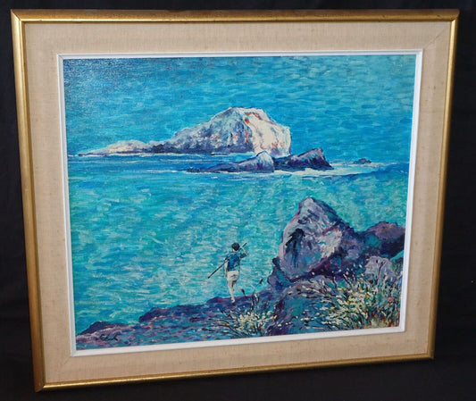 Hawaii Oil Pastel Painting 36"x78" Portlock from Kahala by Russell Lowrey (BaV)