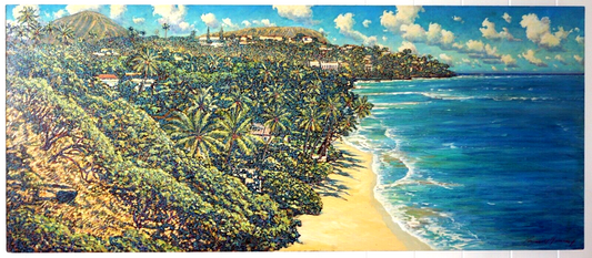 Hawaii Oil Pastel Painting 36"x84" Diamond Head Beach to by Russell Lowrey (BrS)