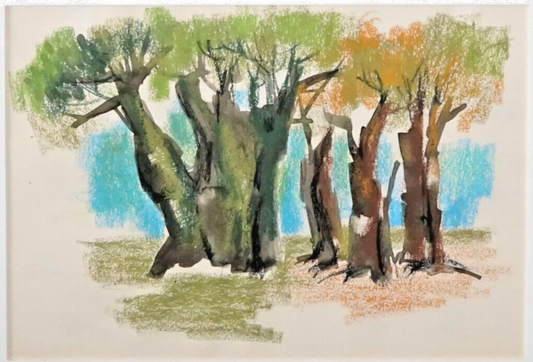 Hawaii Modernist Watercolor & Pastel Painting Trees by Keichi Kimura (PeNe