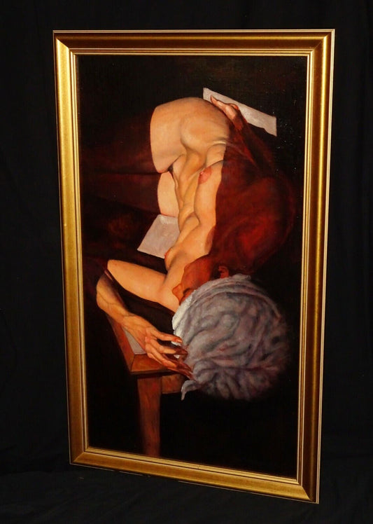 Hawaii Oil Painting Egon Schiele Style Reclining Nude Inez by Snowden Hodges (Sh