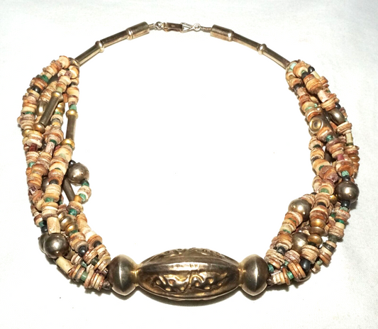 12C Peru Chimu Excavated Shell & Stone Bead Necklace w. Silver Clasp (DaJ)
