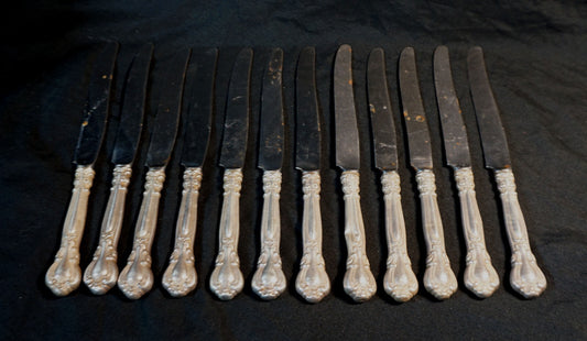 12Pc American Sterling Silver Dinner Knives 9 1/8"- Gorham Chantilly 1895 (ChB)