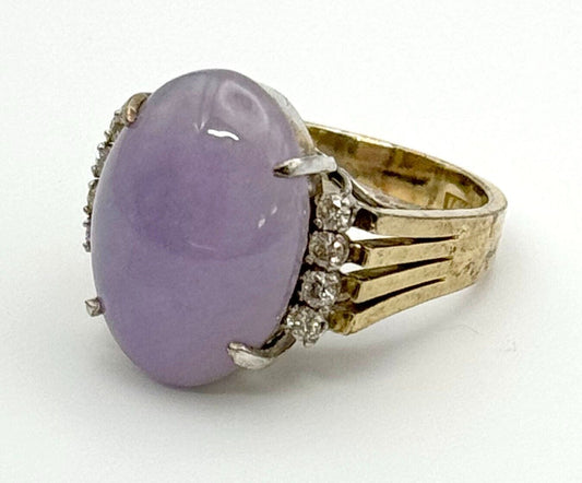13k Multi-Toned Gold Ring Sz 6 w Lavender Jade & 8 Diamond Accents (MeC)