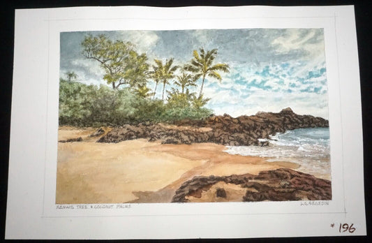 Hawaii Watercolor Painting Keawe Trees & Coconut Palms by Larry Segedin #196