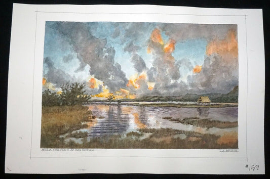 Hawaii Watercolor Painting Heeia Fish Pond at Day Break, Oahu by L. Segedin #159