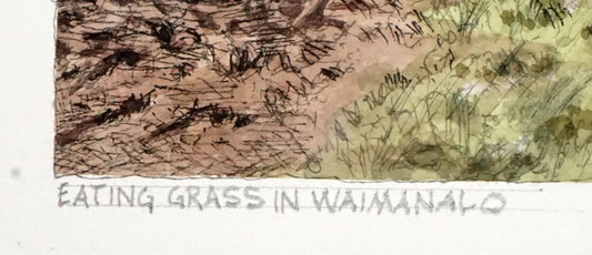 Hawaii Watercolor Painting Horses Eating Grass in Waimanalo by L. Segedin #209