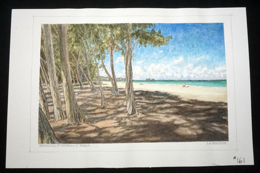 Hawaii Watercolor Painting Ironwoods at Waimanalo Beach by Larry Segedin #161