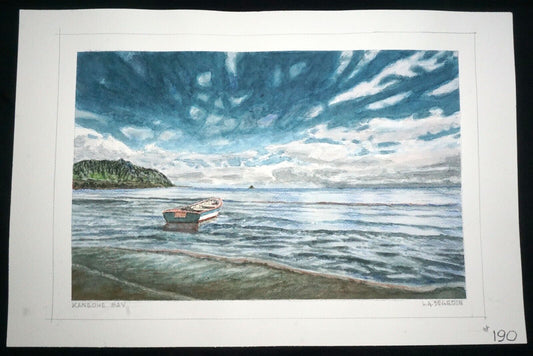 Hawaii Watercolor Painting Kaneohe Bay w. Boat by Larry Segedin #190