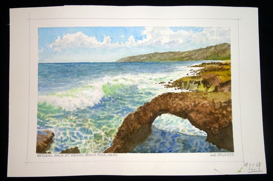 Hawaii Watercolor Painting Natural Arch @ Kea'au Beach Park by L. Segedin #129