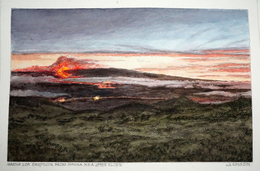 Hawaii Watercolor Painting Mauna Loa Eruption from Mauna Kea by L. Segedin #208