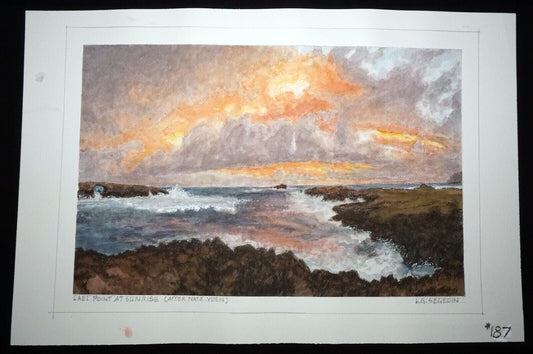 Hawaii Watercolor Painting Laie Point at Sunrise by Larry Segedin #187