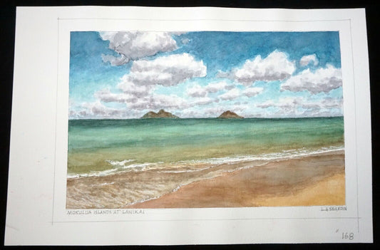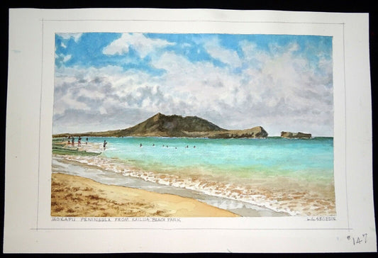 Hawaii Watercolor Painting Mokapu Peninsula Kailua Beach Park L. Segedin #147