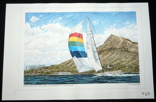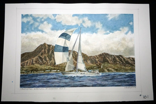 Hawaii Watercolor Painting Transpac Arrival @ Diamond Head by L. Segedin #181