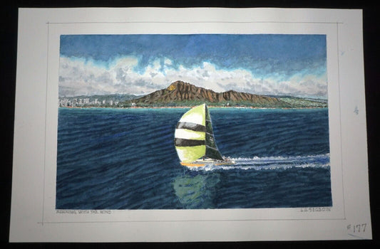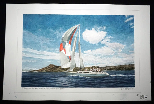 Hawaii Watercolor Painting Transpac Approaching Diamond Head Larry Segedin #185