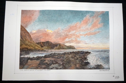 Hawaii Watercolor Painting The Warm Glow at Sunset West Oahu by L. Segedin #158