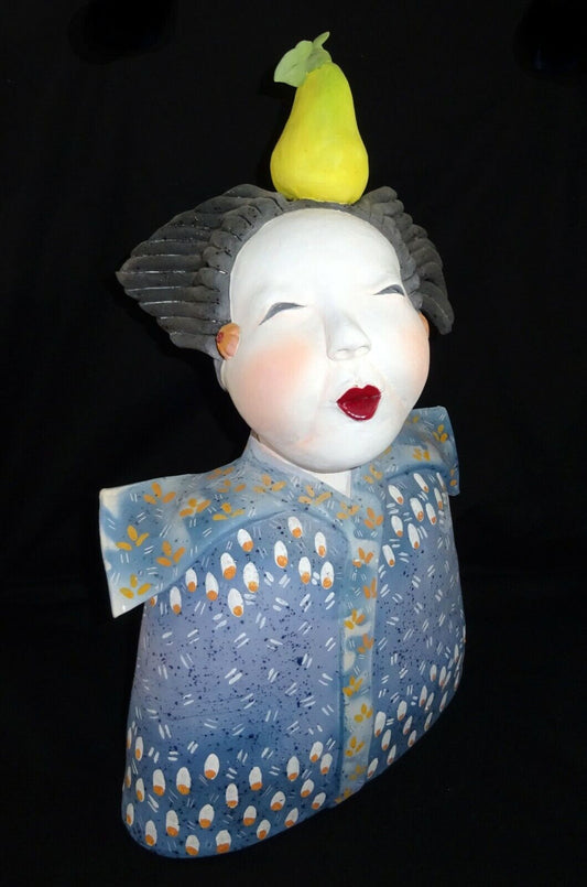 Hawaii Whimsical Pottery Sculpture "Balancing Act w. Pear" by Vicky Chock (Z)