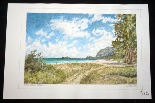 Hawaii Watercolor Painting Waimanalo Beach, Oahu by Larry Segedin #162