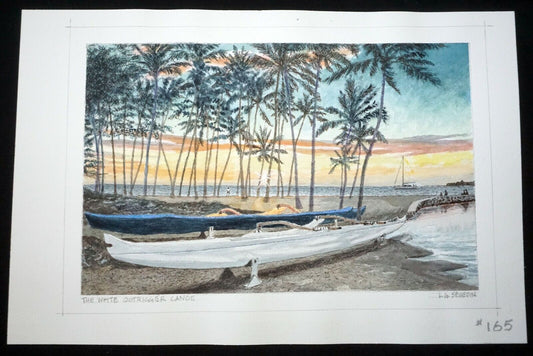 Hawaii Watercolor Painting The White Outrigger Canoe by Larry Segedin #165