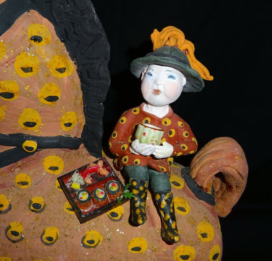 Hawaii Whimsical Pottery Sculpture "Horseback Lunch Break" by Vicky Chock (Z)