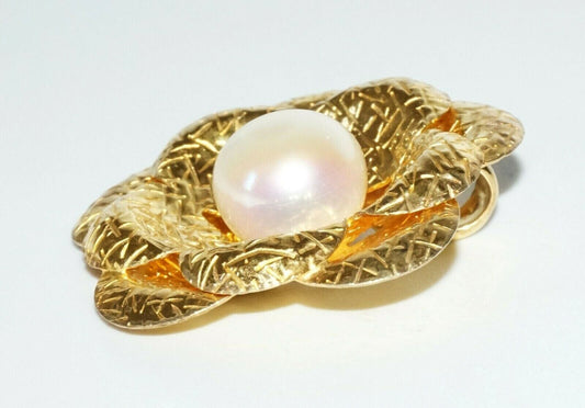 Italian Gold-Plated Sterling Silver Flower Pendant w. 1x Pearl Accent (SaR)#245