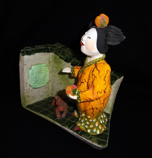 Hawaii Whimsical Pottery Sculpture Po Po' 婆婆 Holding Peaches Vicky Chock (Z)