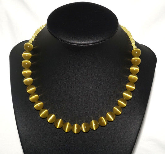 Iridescent Round Yellow Green Beaded Necklace w Matching Earrings (MaM)11