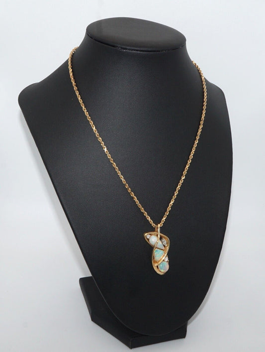 Italian 14k Yellow Gold Necklace 20" & Pendant w Opal & Diamond Accents (NeW)