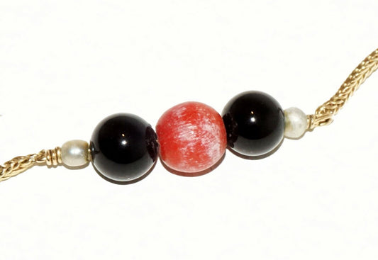 Italy 14K yellow Gold Necklace w Red & Black Coral Beads Giovanni Balestra (LeP)