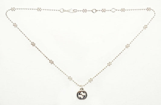 Italy Sterling Silver Interlocking G Pendant Necklace w Flower Chain Gucci (LeP)