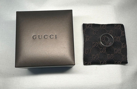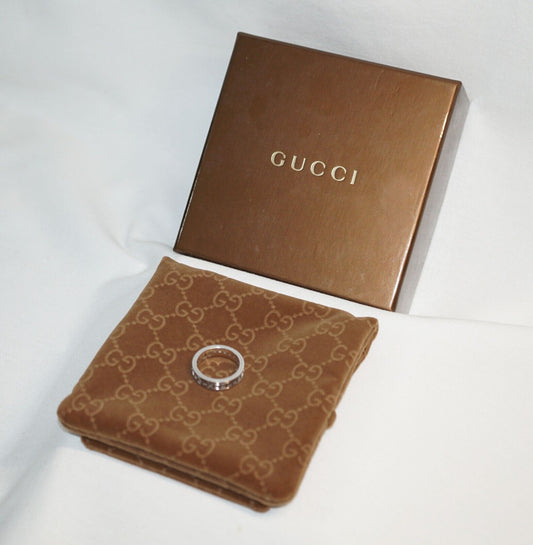 Italian Gucci 18K White Gold Icon Band Ring Size 9.75 w Pouch & Box (InS)42