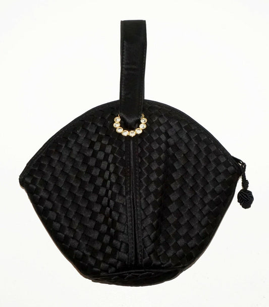 Italy Black Woven Design & Rhinestone Accented Mini Purse Bottega Veneta (LeP)