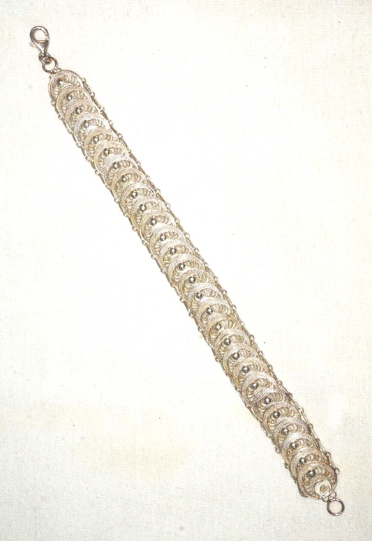 Italian Sterling Silver Filigree Crescent Bracelet 7 " w Lobster Clasp (TiG)