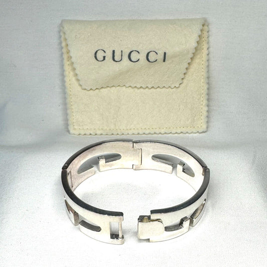 Italian Gucci Sterling Silver Bracelet Wrist Size w Pouch & Box (InS)#1
