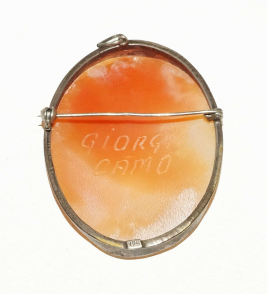 Italian Sterling Silver Shell Cameo Brooch Pendant w. Female by Giorgio (BrM)#9