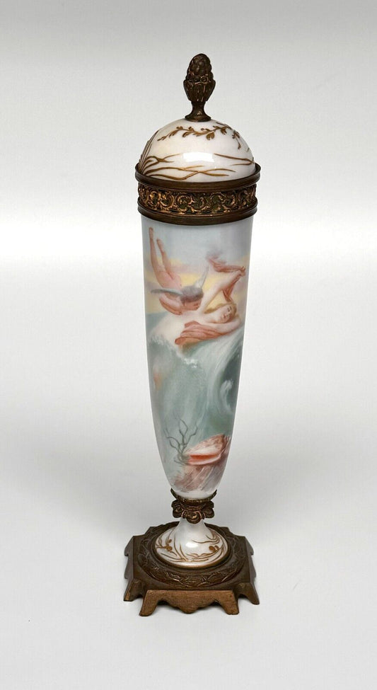 Late 1800's French Maxant Hand-Painted Porcelain & Metal Urn w Lid (LeD)