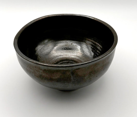 Late 20th C. Black Iridescent Glazed Stoneware Tea Bowl by Toshiko Takaezu (SmM)