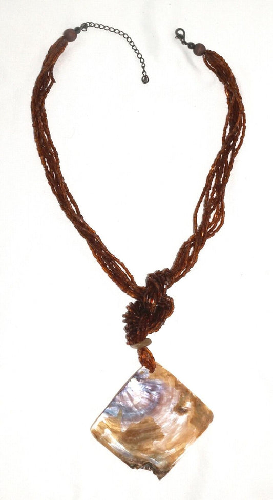 Multi Strand Glass Bead Necklace w Mother of Pearl Pendant (MaM)12