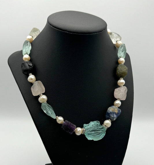 Multi-Gemstone & Freshwater Pearl Necklace 17" (KnK)