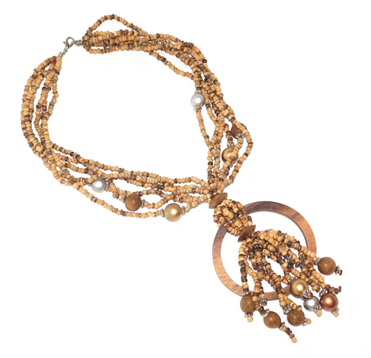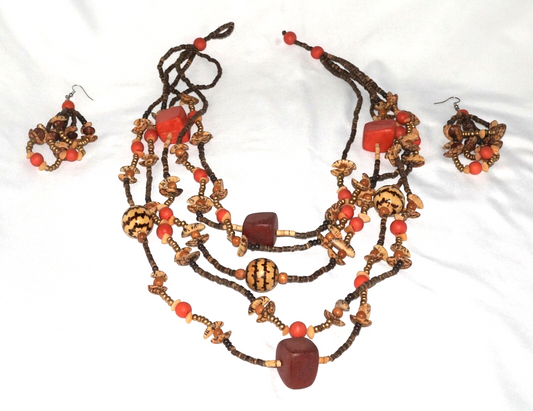 Multi Strand Necklace Accented w Coconut & Wood Beads w Matching Earrings (MaM)8