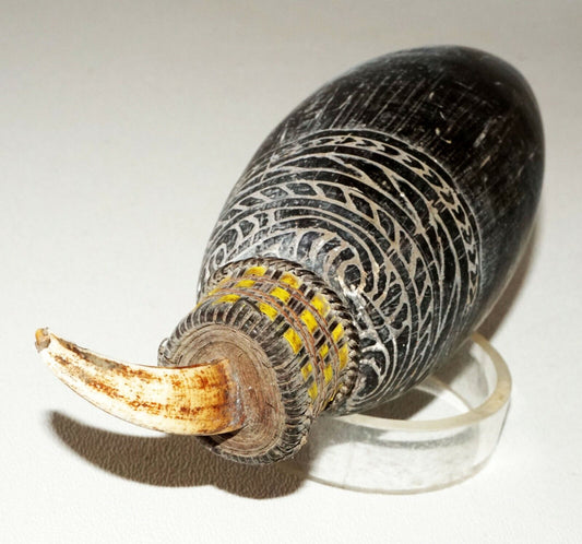 New Guinea Wooden Carved Lime Container w. Boars Tusk Finial Top (Mil) #213