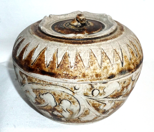 15C Thailand Sawankhalok Brown Glaze Covered Pottery Bowl or Jar (JSt)31
