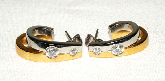 Pair US Modernist Stainless Steel & Cubic Zirconia Earrings (KiL)