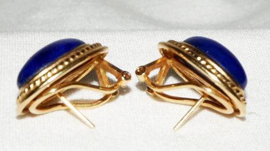 Pair US 14k Yellow Gold Earrings bezel set w. Lapis Lazuli Oval Cabochon (ShI)