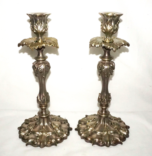 Pair US Silver Plated Heavy Candelabra w. Acanthus Leaves Motif unsigned (UVi)