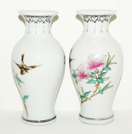 Pair of Chinese Republic Period Miniature Vases w. Flower & Bird Motifs (BrM)
